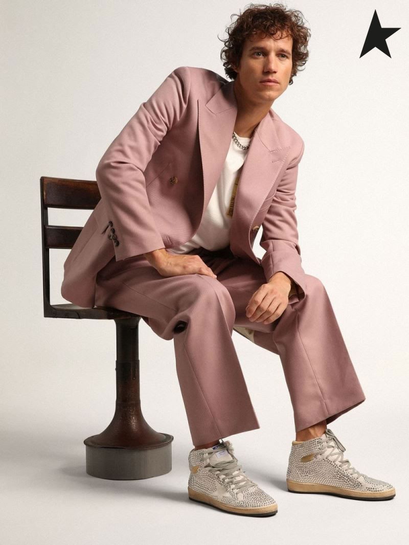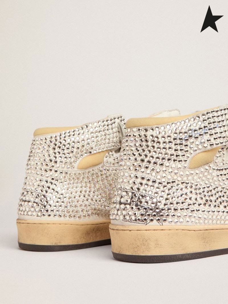 Golden Goose Sky-Stjerners joggesko i optisk hvit semsket skinn med all-over hvite krystaller og nappa-skinn-stjerners hvit rød sølv