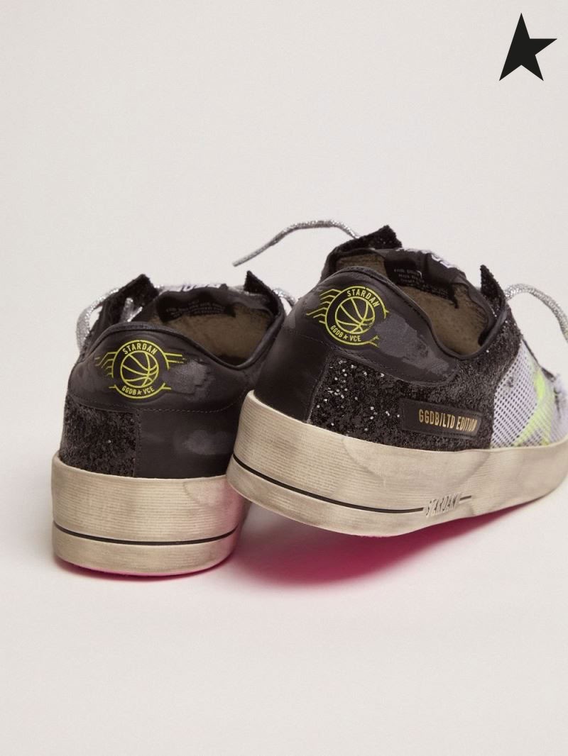 Golden Goose Stardan joggesko med glitrende øvre, fluorescerende gul stjerne og mesh setter brun Fluorescerende gul