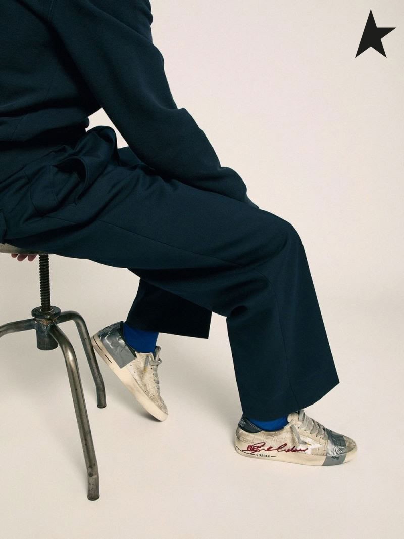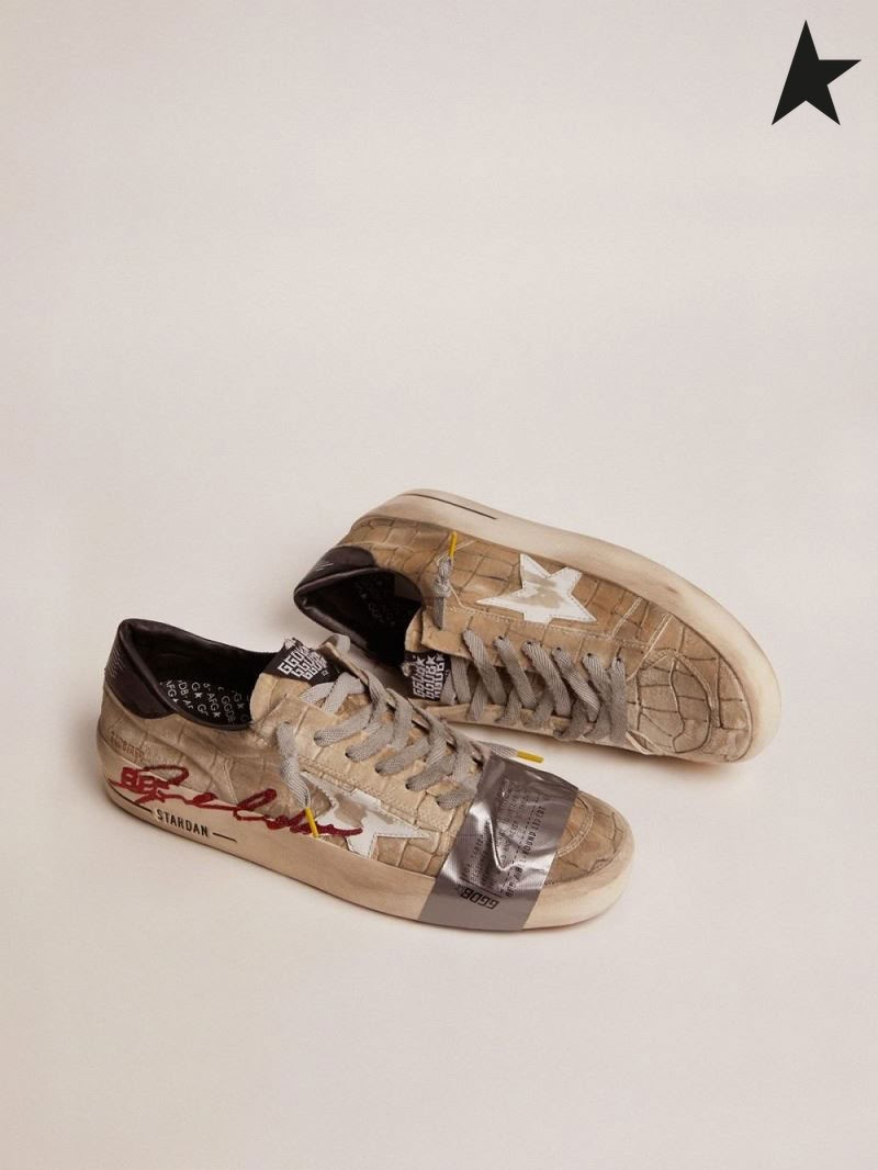 Golden Goose Stardan LAB joggesko med sølv fløyel øvre med krokodille skrive ut og appliquéd tape, sølv, gull farge, hvit svart