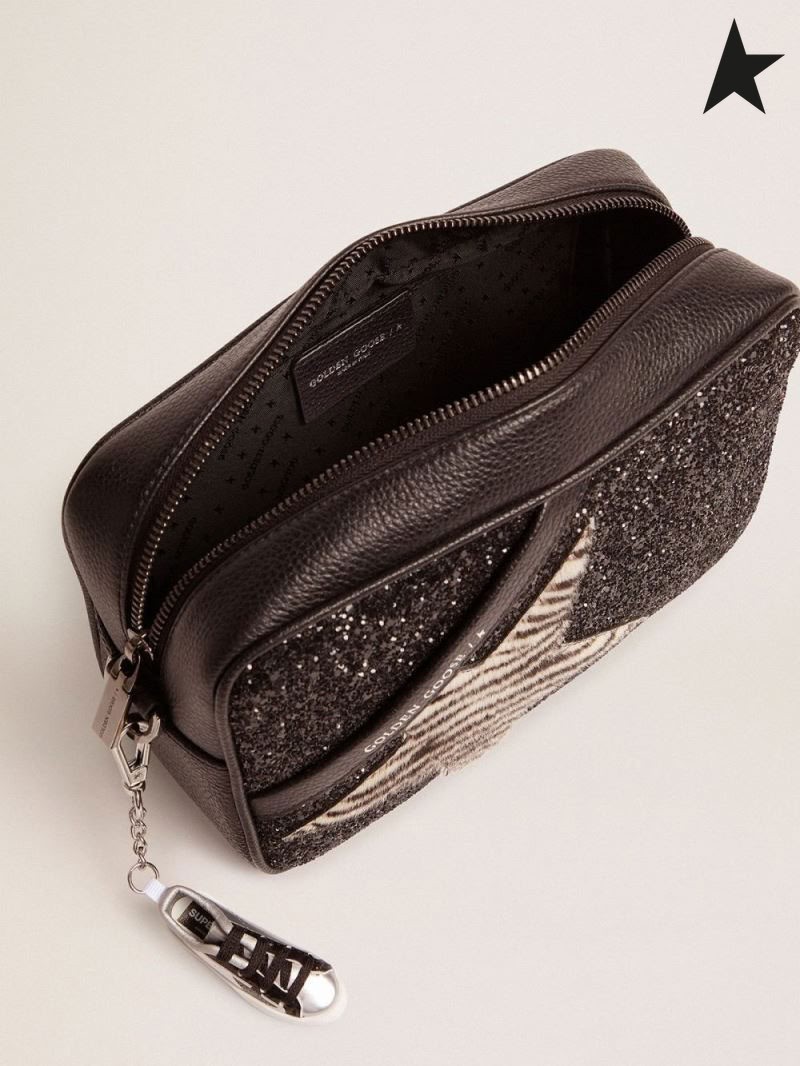 Golden Goose Stjerners Pose med svart glitter og stjerner i zebra-print ponni hud Svart