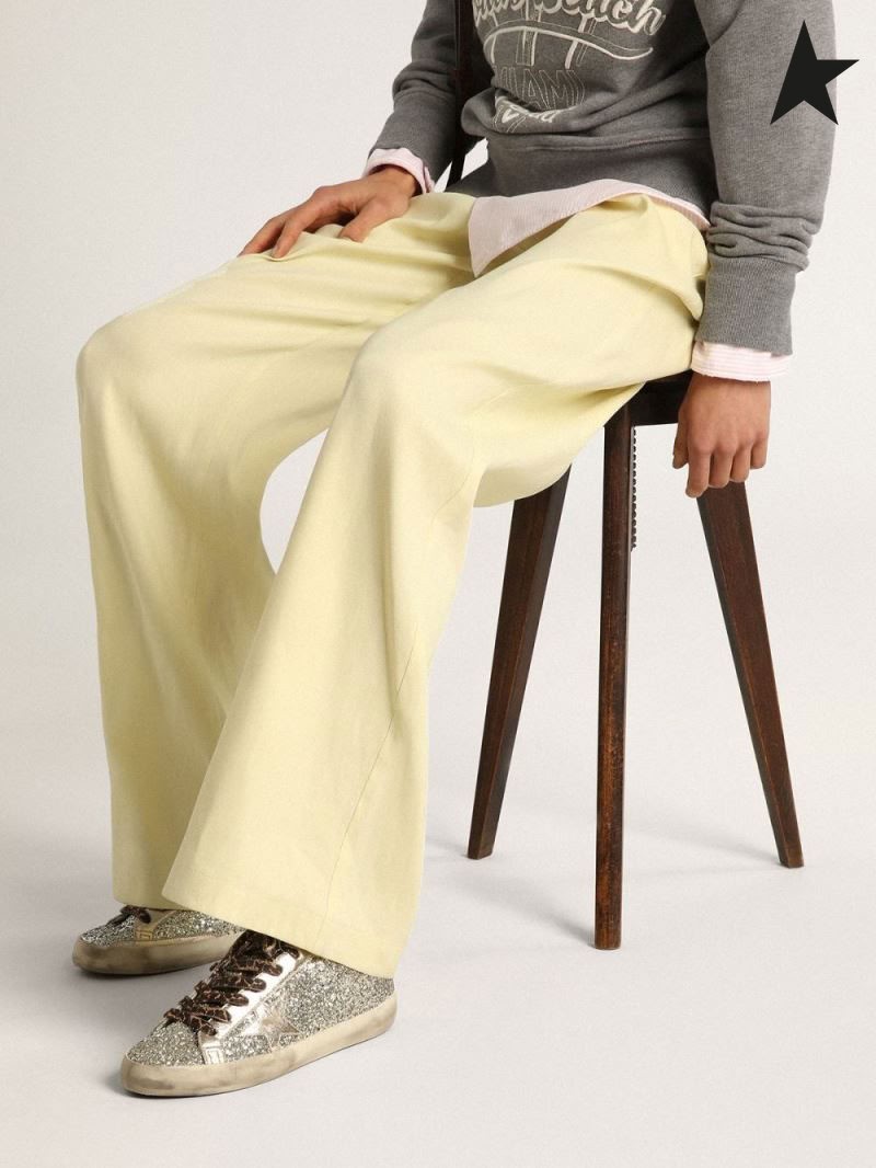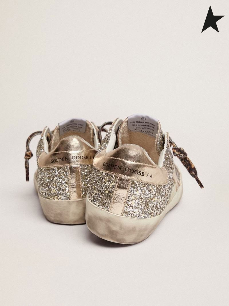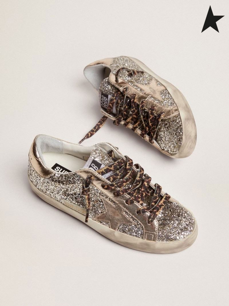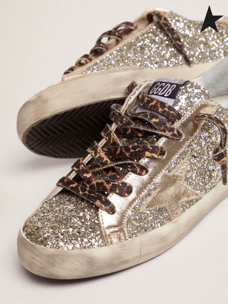 Golden Goose Super-Stjerners joggesko i platinum-farget glitter med stjerne og hæl kategorien i tone-på-tone laminert skinn rød Platinum røde Platinum