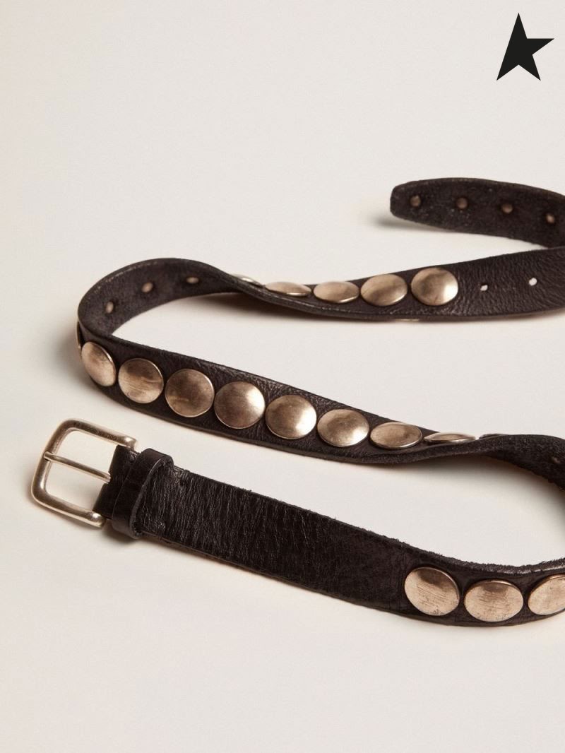 Golden Goose Svart Trinidad belte i vasket skinn med alderen sølv farge svart studs
