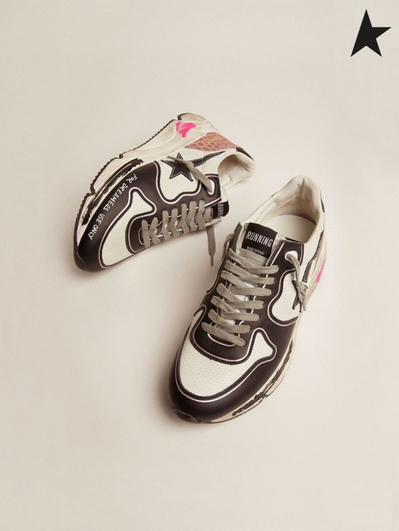 Buty do biegania Golden Goose Buty na podeszwie z białej skóry z змеиным nadrukiem i kontrastującymi czarnymi elementami black white