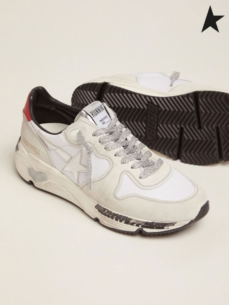 Buty do biegania Golden Goose Buty na podeszwie z czerwonym каблучным stroikiem i srebrną gwiazdą srebrno-czerwony