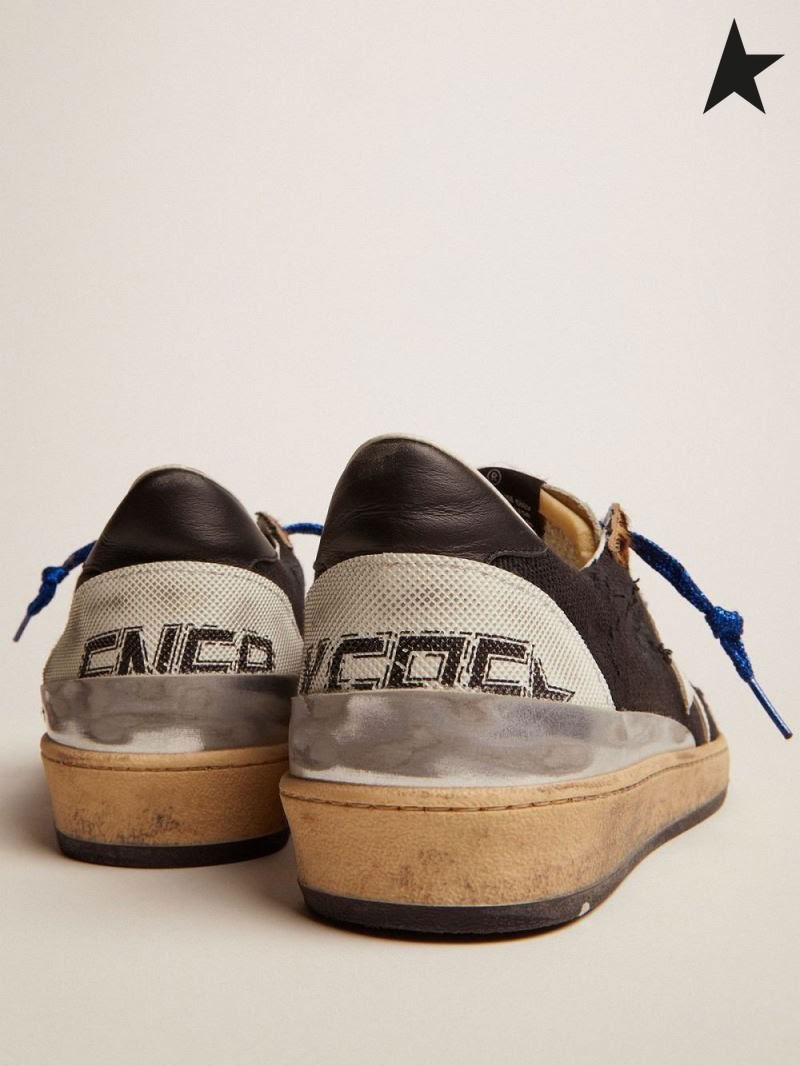 Buty do biegania Golden Goose Star Ball z czarnej zużyta płótnie ze wstawkami ze skóry pony z leopard print i kolorowych wzorem w kolorze czarnym