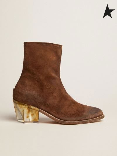 Buty Golden Goose Star z brązowego woskowanego zamszu ze rzeźbiarskiej kozaka z metalowym wykończeniem brązowy