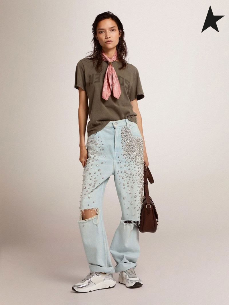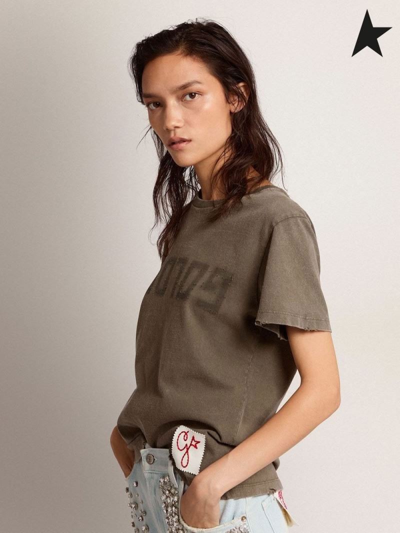 Koszulka Golden Goose Golden collection oliwkowo-zielony kolor z porwany wzorem oliwkowo-zielony