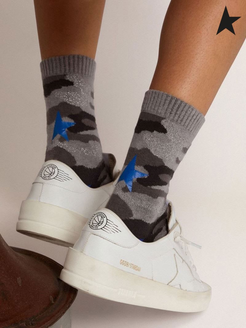 Skarpetki z камуфляжным nadrukiem Golden Goose z jasno-szarymi wstawkami z люрекса i szczegółami royal niebieski brązowy камуфляжно-szary
