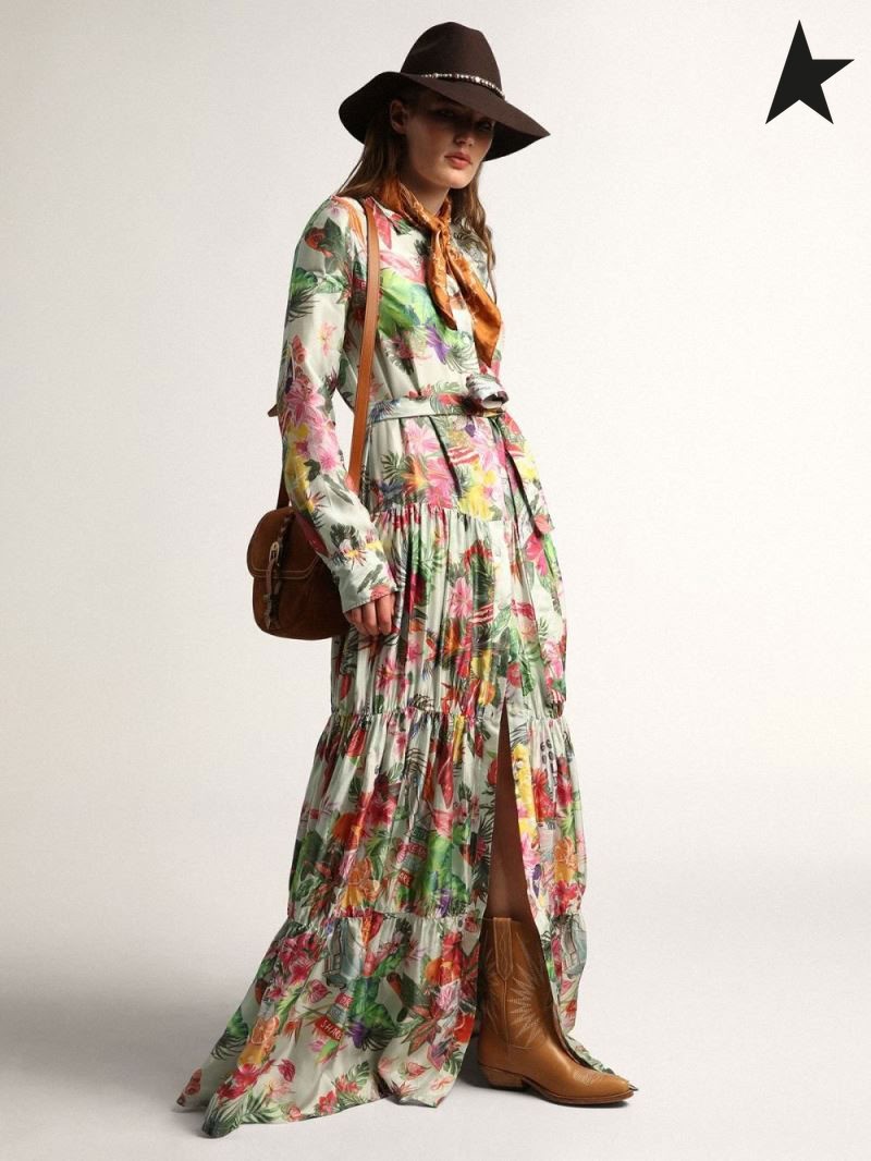 Sukienka-koszula Dalma z kolekcji Golden Goose Journey z kolorowym tropikalnym nadrukiem zielony