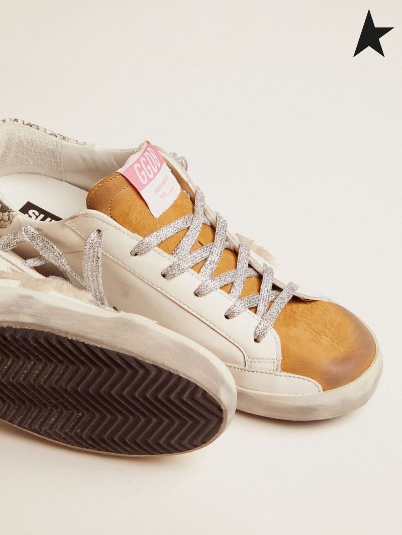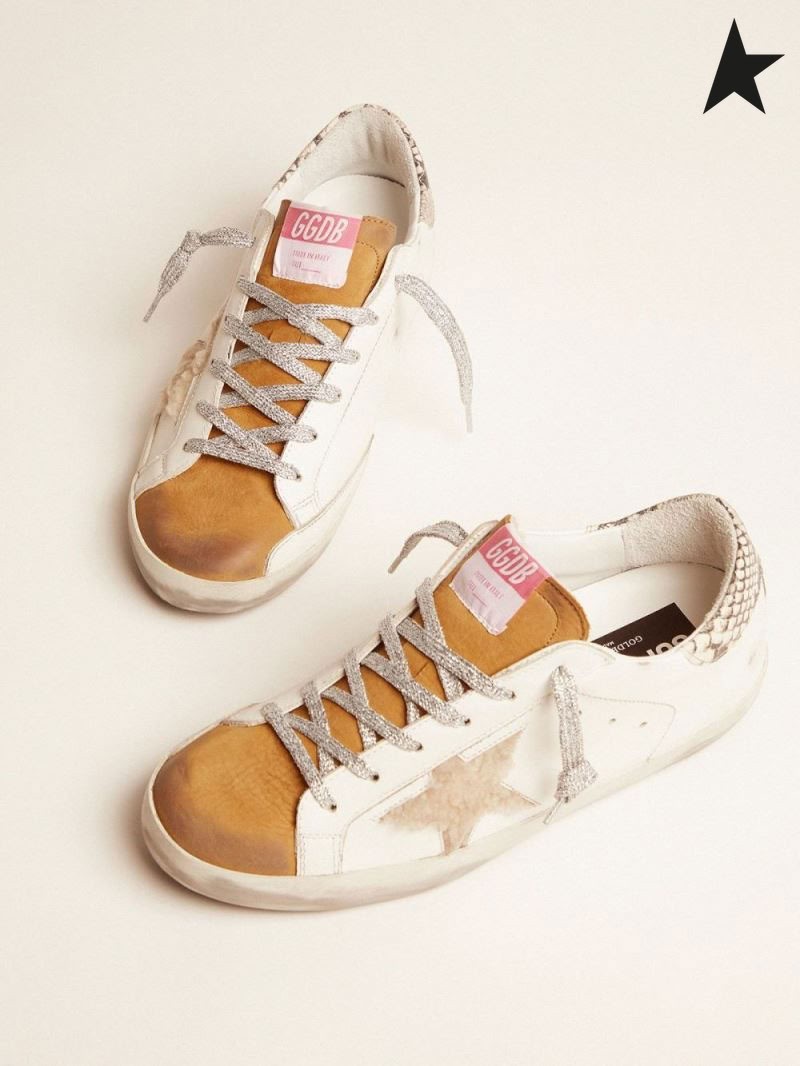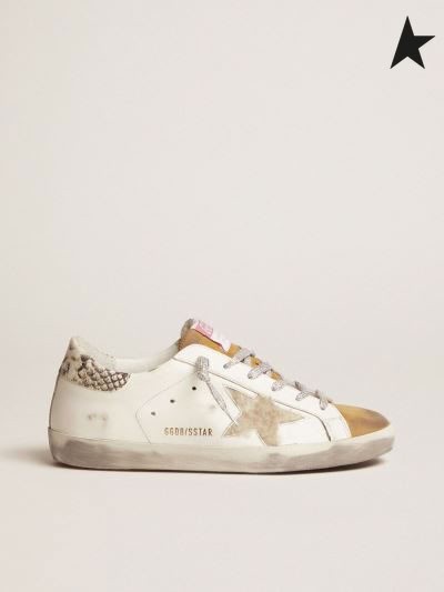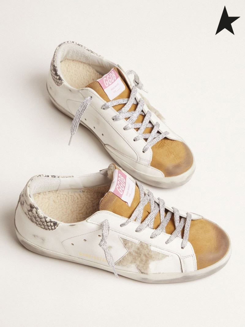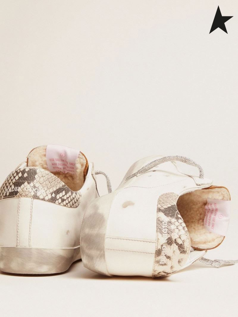 Суперзвездные trampki Golden Goose z wełny owczej ze змеиным nadrukiem na obcasie z białej wężowej skóry