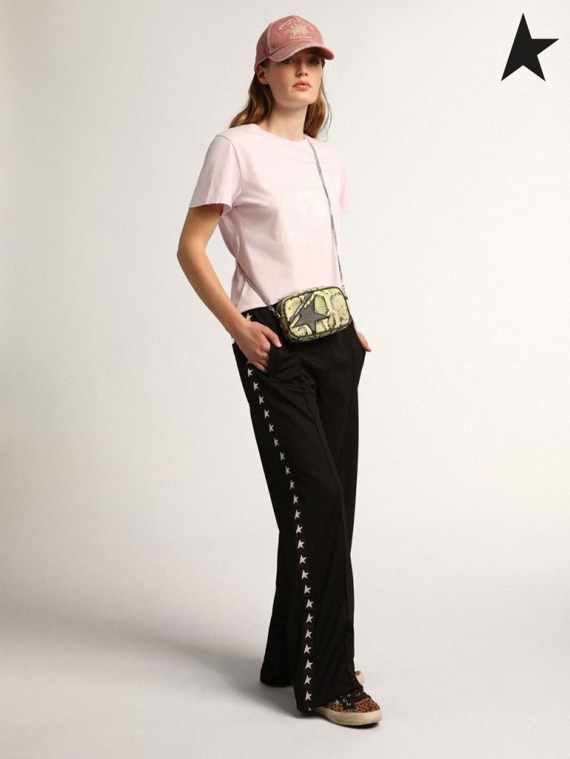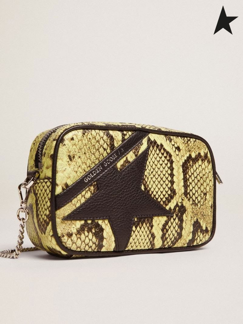 Torba Golden Goose Mini Star z лаймовой skóry z змеиным nadrukiem i czarną skórzaną gwiazdą black light green