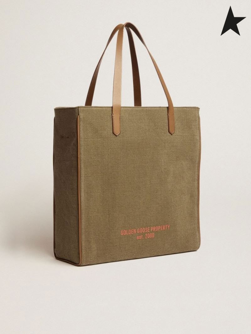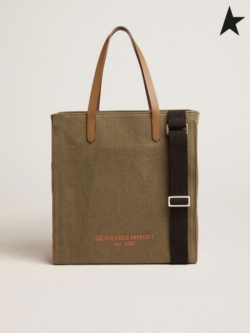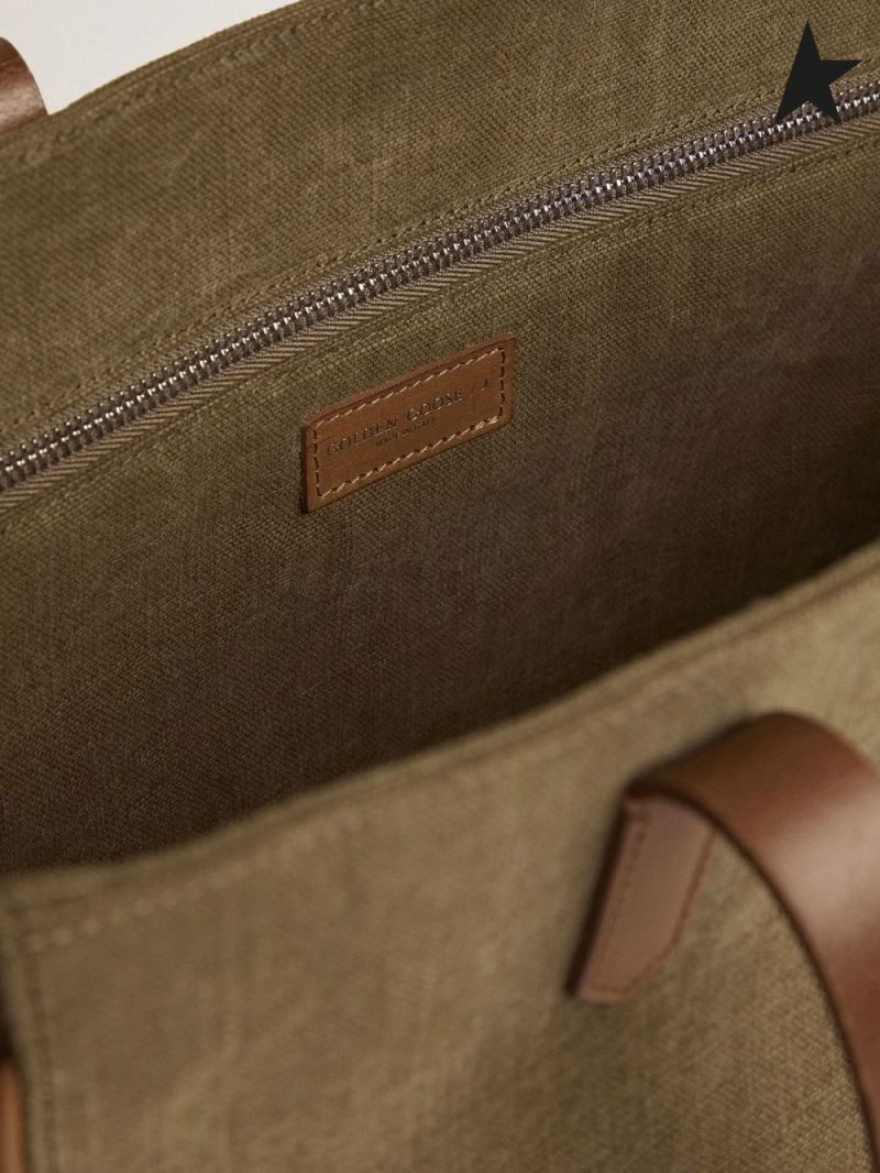 Torba Golden Goose North-South California z wojskowo-zielonego płótna koloru kawy