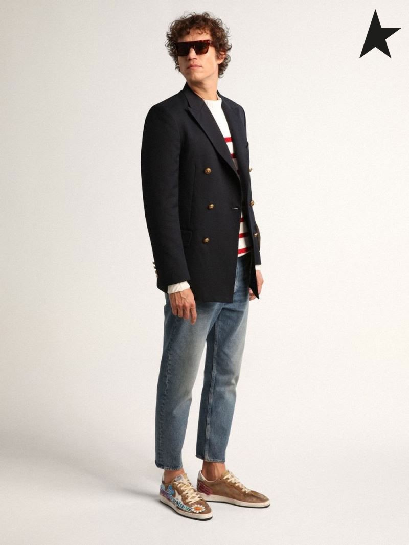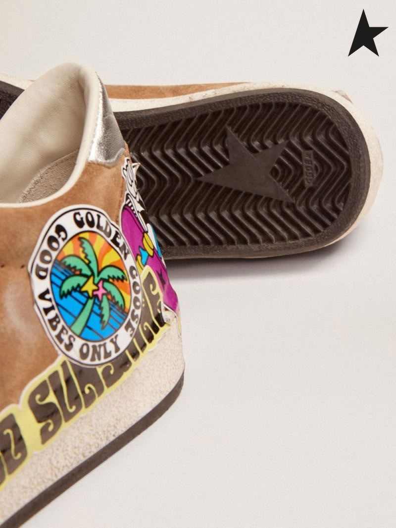 Ganso de ouro Bola de Estrelas tênis de tabaco cor-de-camurça com uma star de couro branco e coloridas, adesivos vermelha branca prata vermelha