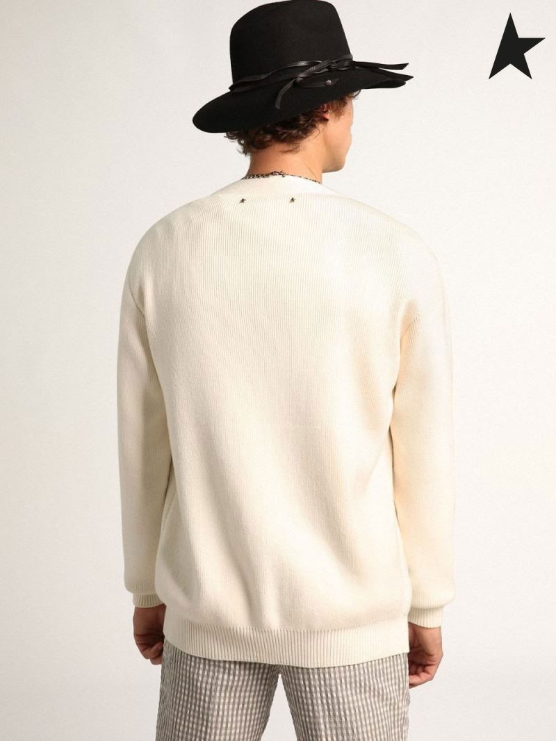 Ganso de ouro Branco Jornada de recolha de casaquinho com mão-bordado preto tropical padrão Bege branco