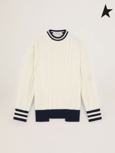 Ganso de ouro Branco Jornada de recolha de Devon camisola com detalhes contrastantes de azul Bege branco