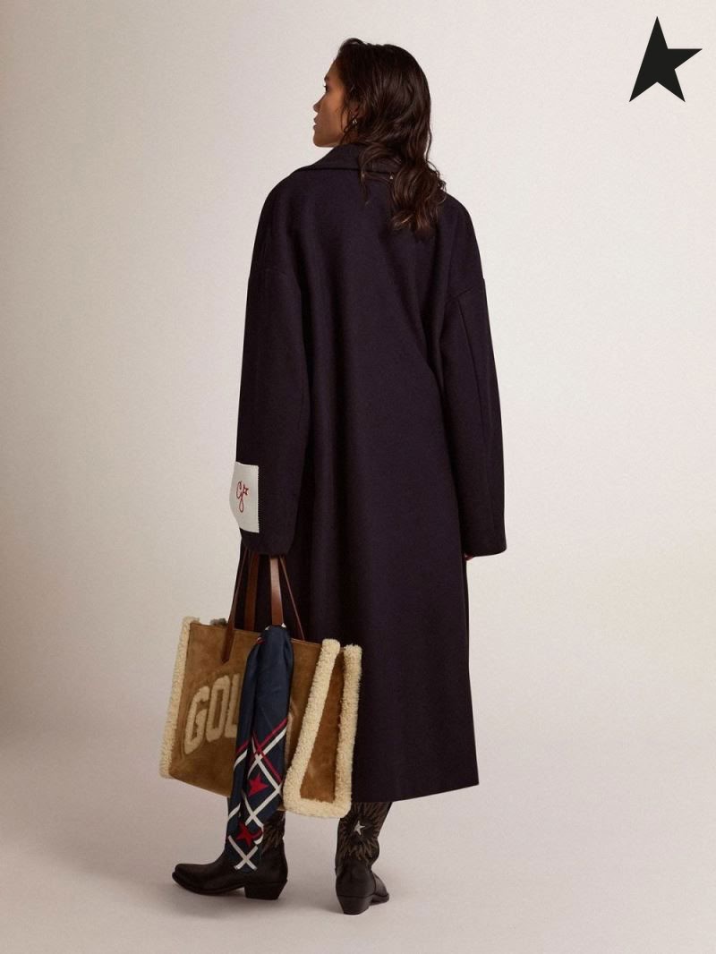 Ganso de ouro coleção de Ouro single-breasted cocoon casaco escuro de lã azul com dourados heráldico botões azul escuro