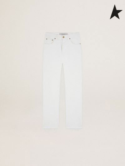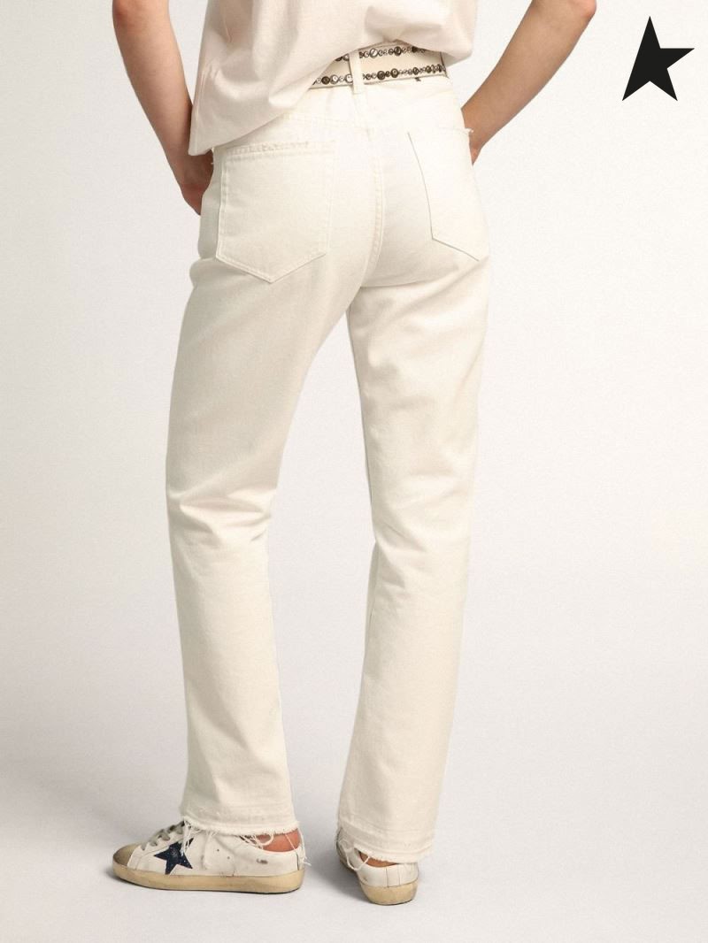 Ganso de ouro Cortada Jornada coleção de calças brancas bull jeans com desgastada efeito de bainha branca