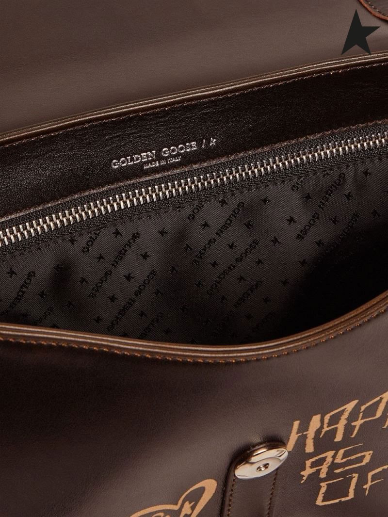 Ganso de ouro Médio Rodeio Saco de couro preto com contraste preto letras