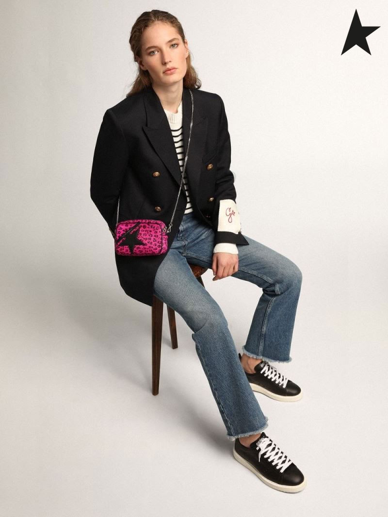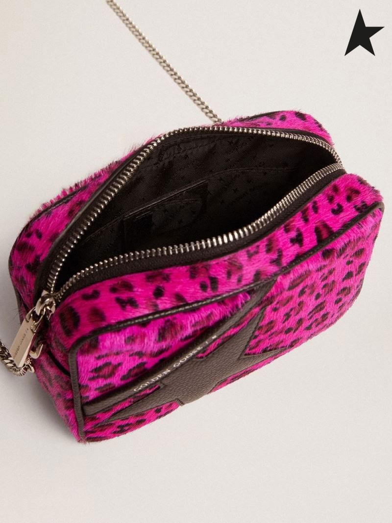 Ganso de ouro Mini Estrelas Saco em fúcsia leopard-print pele de pônei com couro preto star preto fúcsia