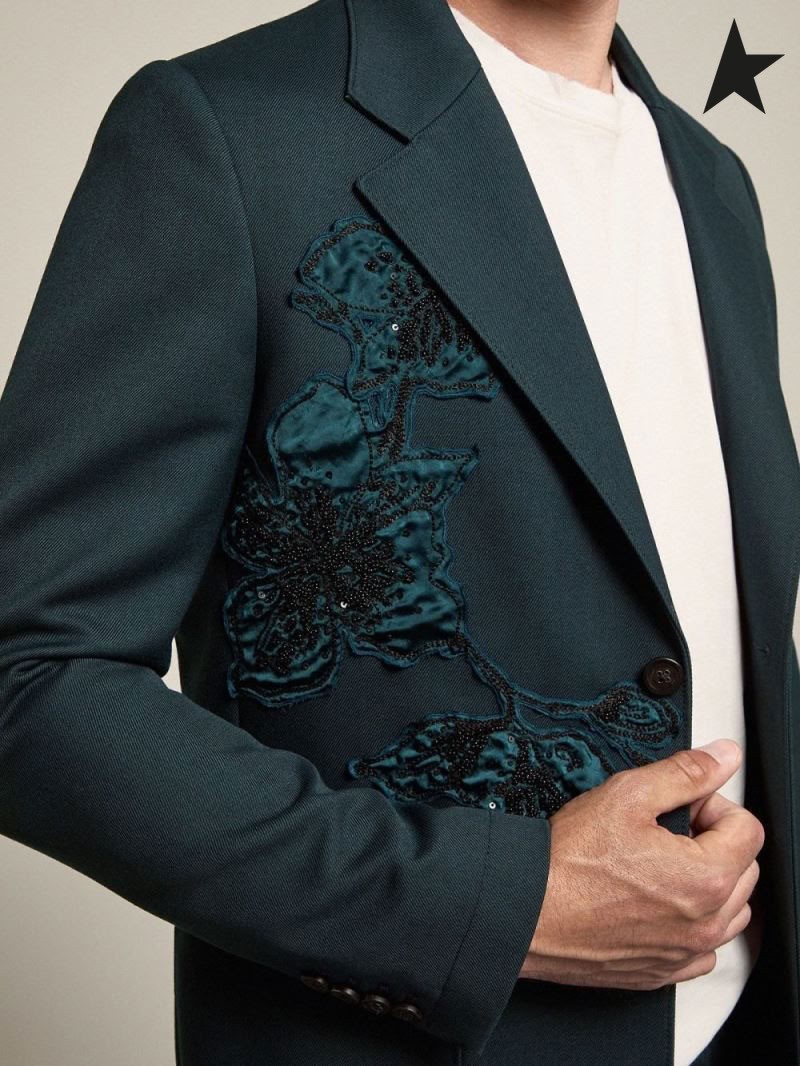 Ganso de ouro Single-breasted Jornada de recolha de Derik jaqueta com appliqued flor manchas escuras turquesa