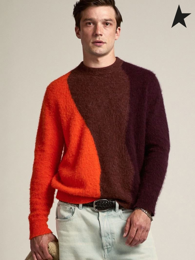 Ganso de ouro Três cores de lã Jornada de recolha de Donnel suéter marrom escuro laranja