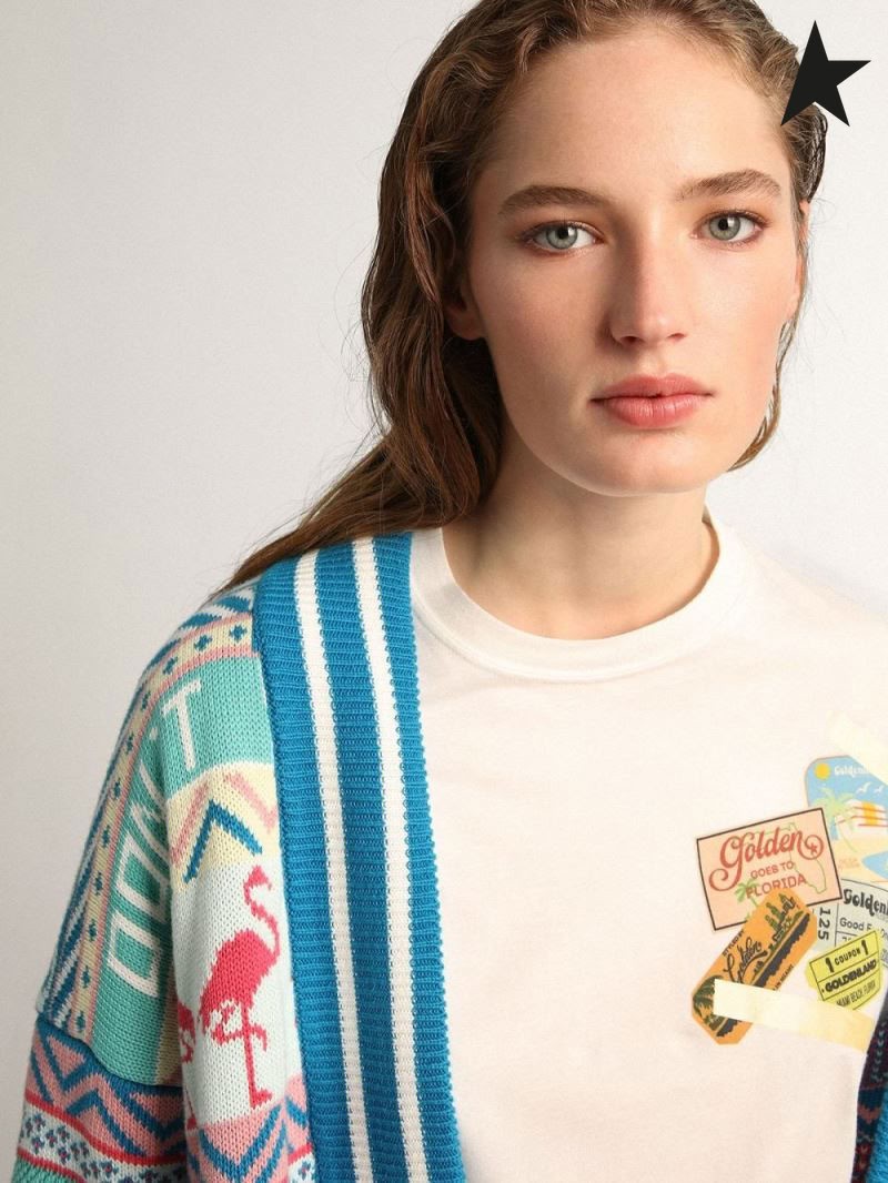 Gâsca de aur Alb Călătorie de colectare T-shirt cu multicolore timbru de imprimare alb