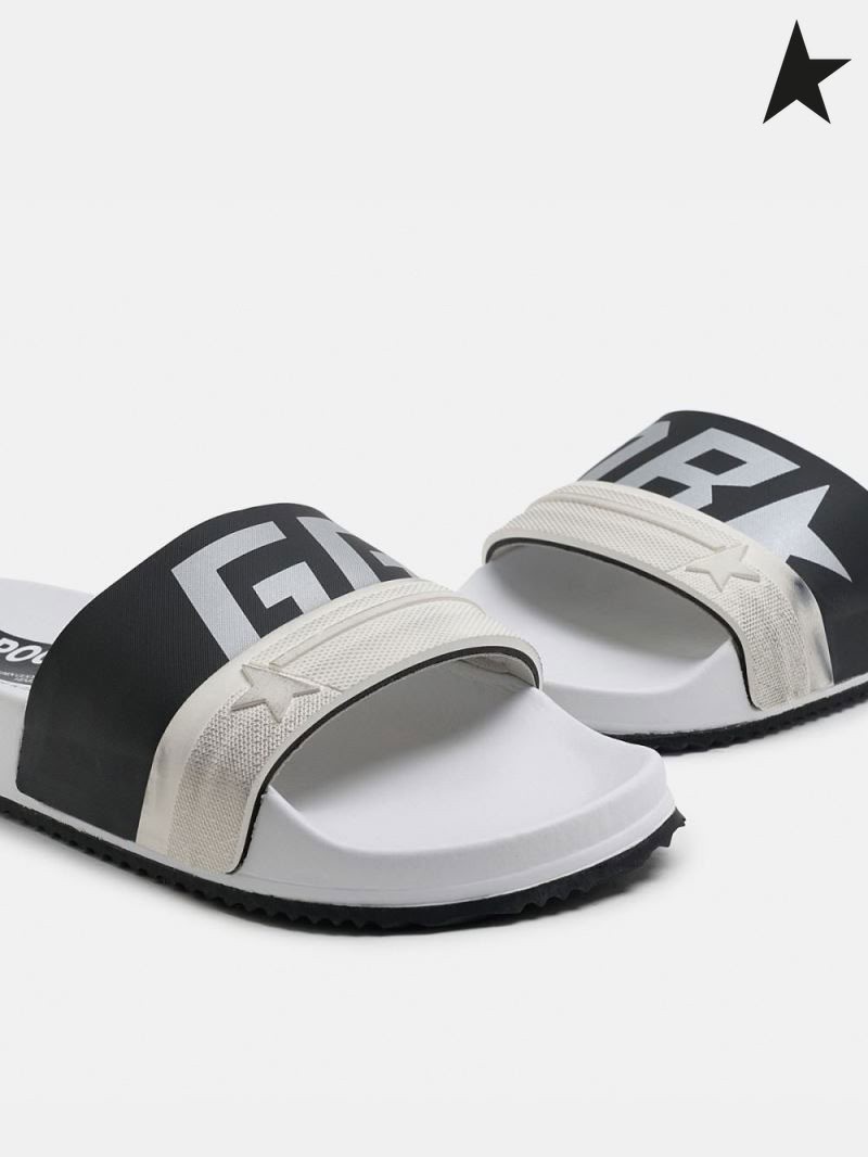 Gâsca de aur alb Poolstars adidași cu două culoare curea negru alb negru