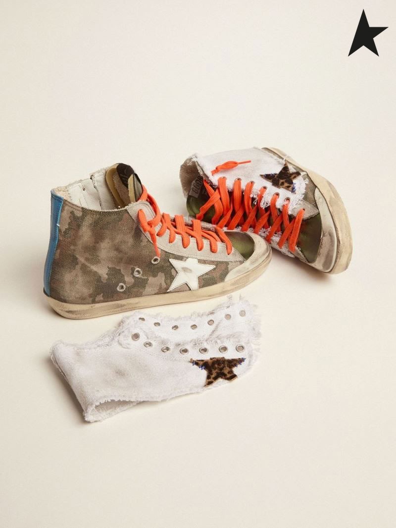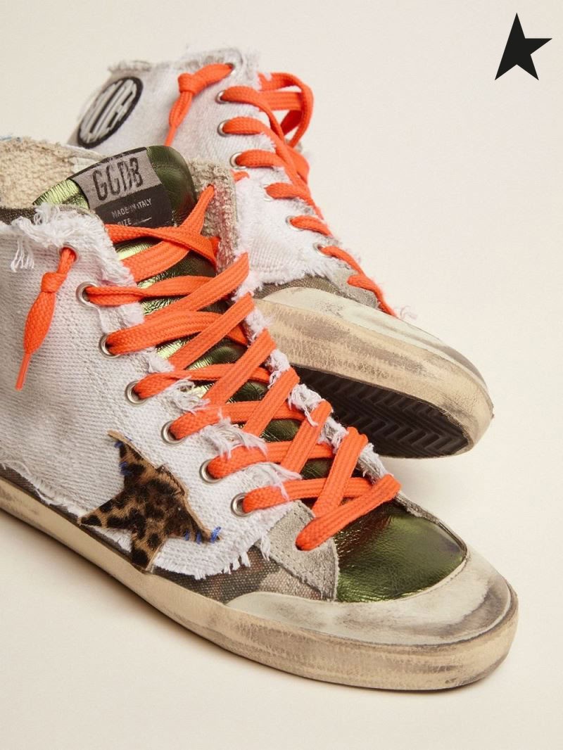 Gâsca de aur Francy Penstar LABORATOR adidași cu camuflaj imprimare și suprapuse de alb de panza de camuflaj alb leopard