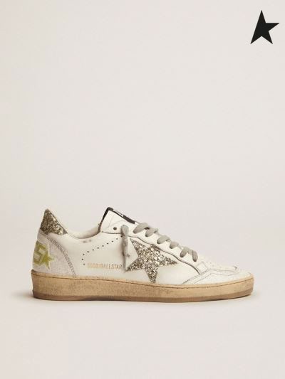 Gâsca de aur Mingea Star SRL adidași din piele alba cu lumina verde cu sclipici alb