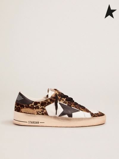 Gâsca de aur Stardan adidași în leopard-print din piele de ponei și black star leopard alb