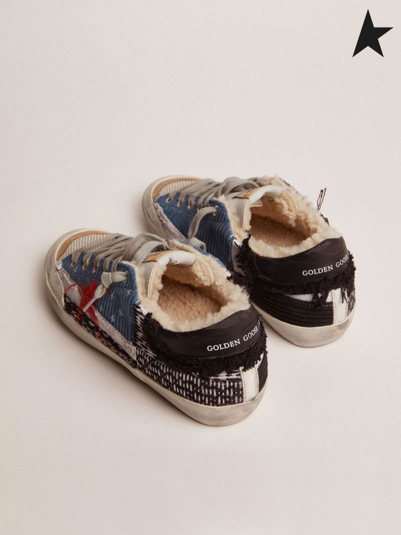 Gâsca de aur Super-Star Penstar LABORATOR adidași cu panza si catifea mozaic și shearling captuseala violet rosu gri