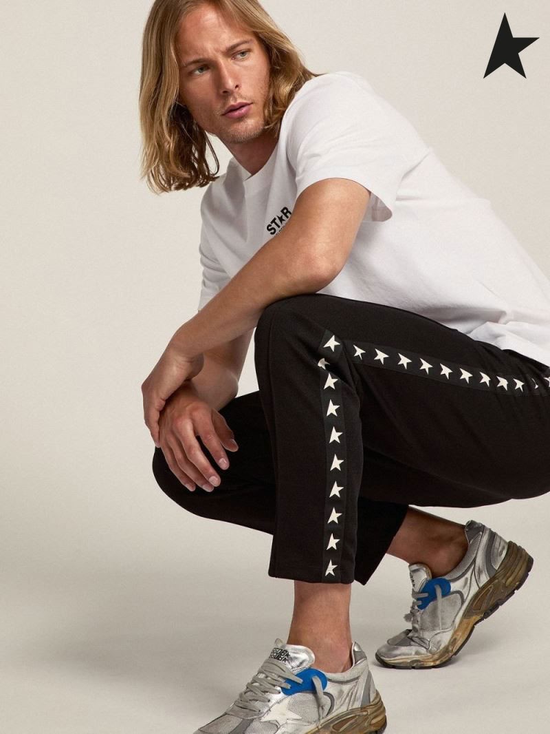Zlatá Hus Biela Hviezda kolekcie T-shirt s kontrastné čierne logo a hviezdičkový white