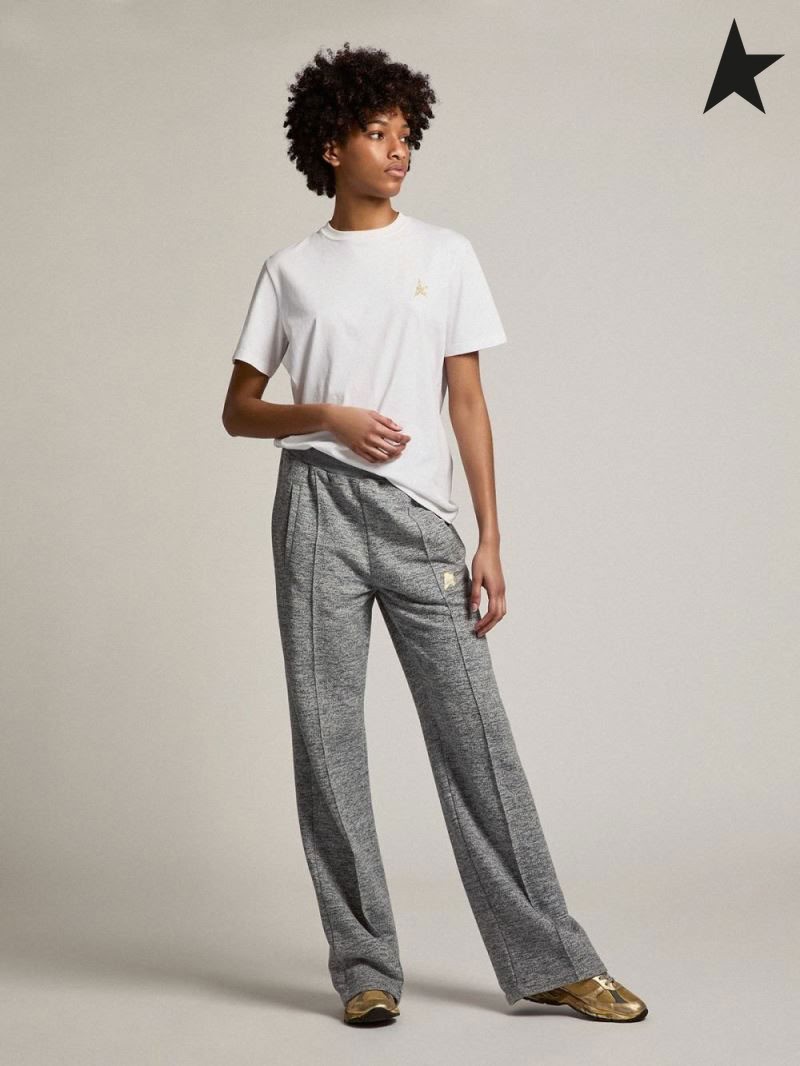 Zlatá Hus Biela Hviezda kolekcie T-shirt s star gold glitter na prednej biely