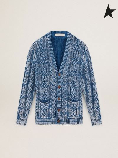 Zlatá Hus Cesty zber cardigan v pletená modrá bavlna s stonewashed dokončiť modrá