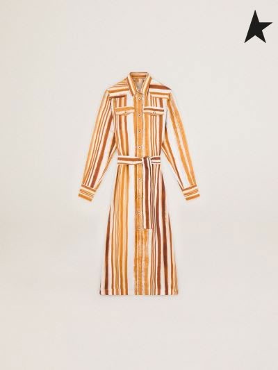 Zlatá Hus Cesty zber Dana tričko šaty s akvarel-efekt zvislý prúžok tlače Ecru / Terakota