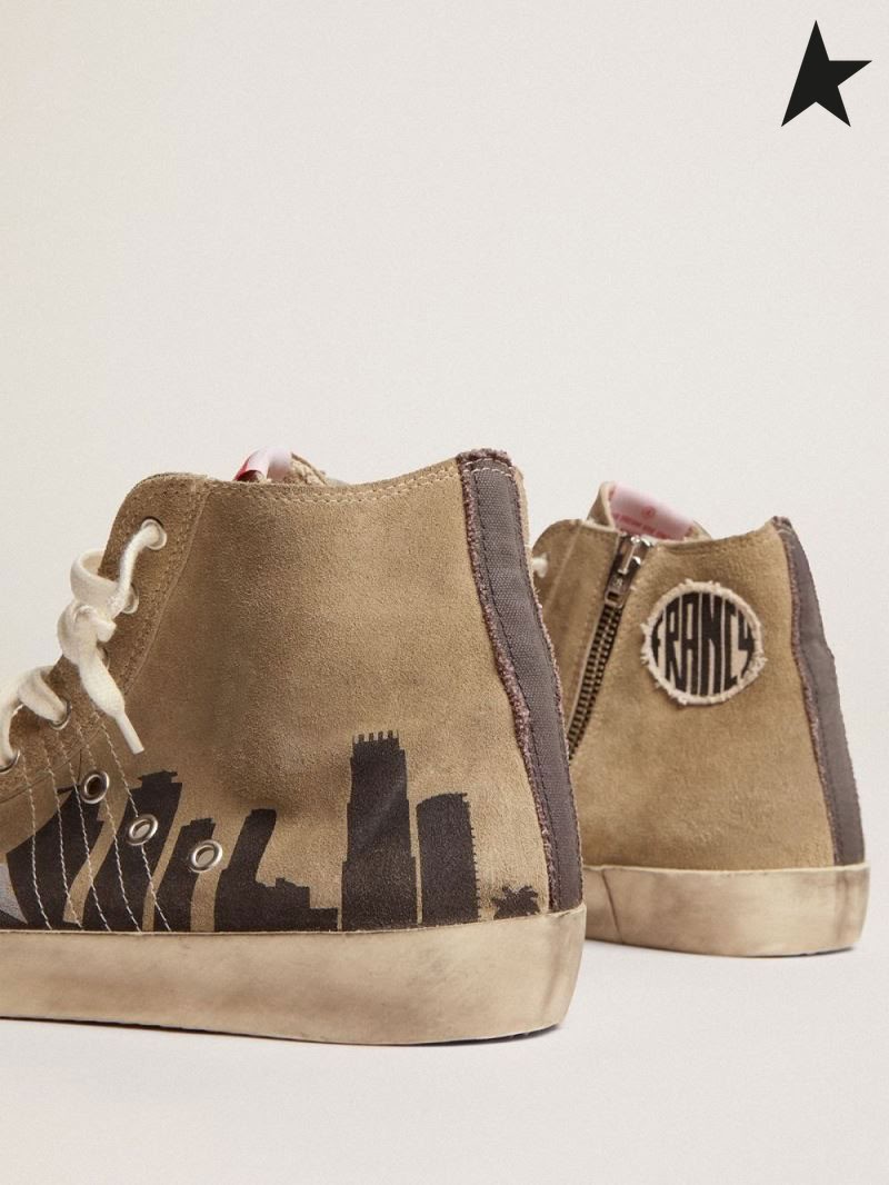Zlatá Hus Francy Penstar tenisky v dove-šedá semiš s black screen-printed star a Miami skyline sivá, čierna, sivá, čierna