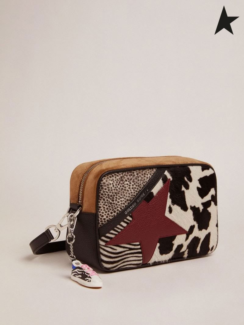 Zlatá Hus Star Taška v živočíšnych tlač pony kože a burgundsko kožené star vínovo červená
