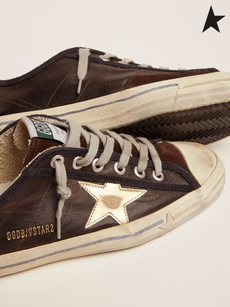 Zlatá Hus V-Star tenisky v tmavo modré plátno s zlata laminované usne star tmavo modrá