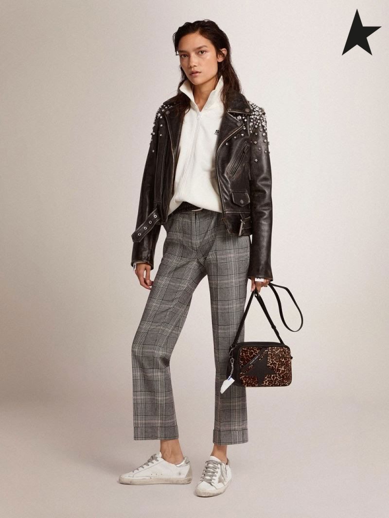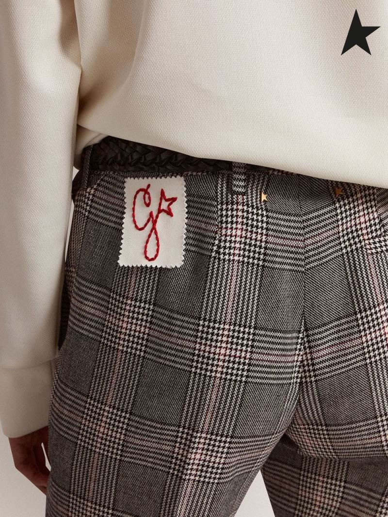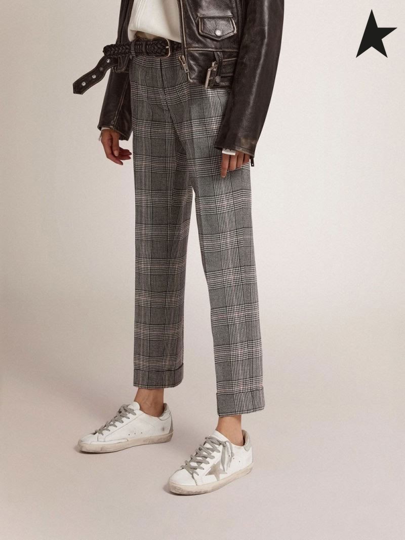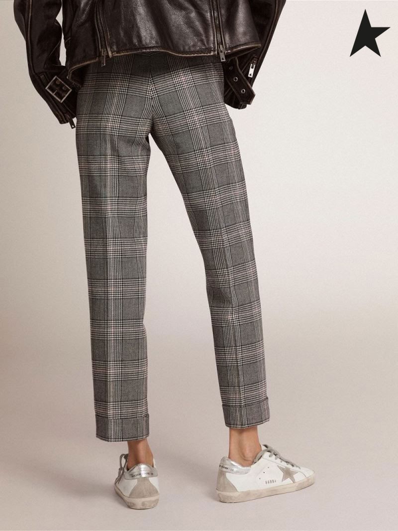 Zlatá Hus Zlatá kolekcia cigaretové nohavice, v šedej a bielej Prince of Wales skontrolujte, šedá biela
