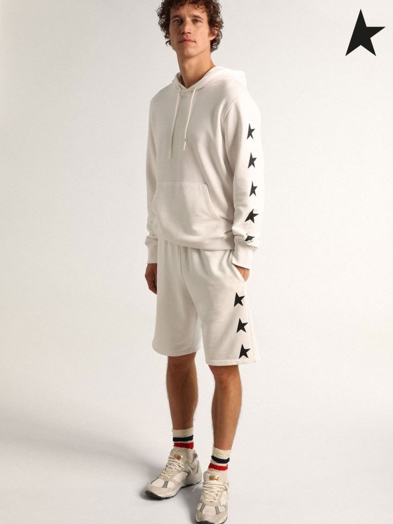 Golden Goose Alighiero Star collection huvtröja i vintage white med kontrasterande svart vita stjärnor
