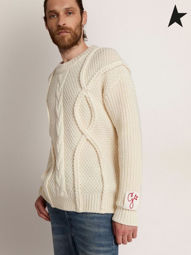 Golden Goose crew-neck tröja i vit Beige vit ull