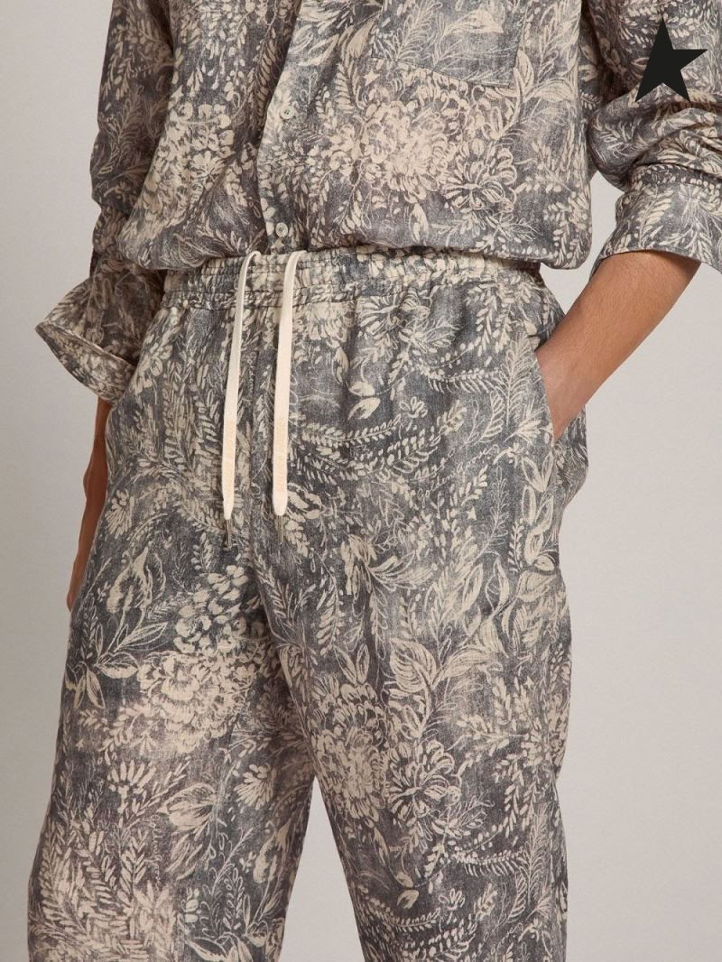 Golden Goose Evan Golden Resort Capsule collection linne byxor i vintage blå med kontrasterande vit toile de jouy-print blå