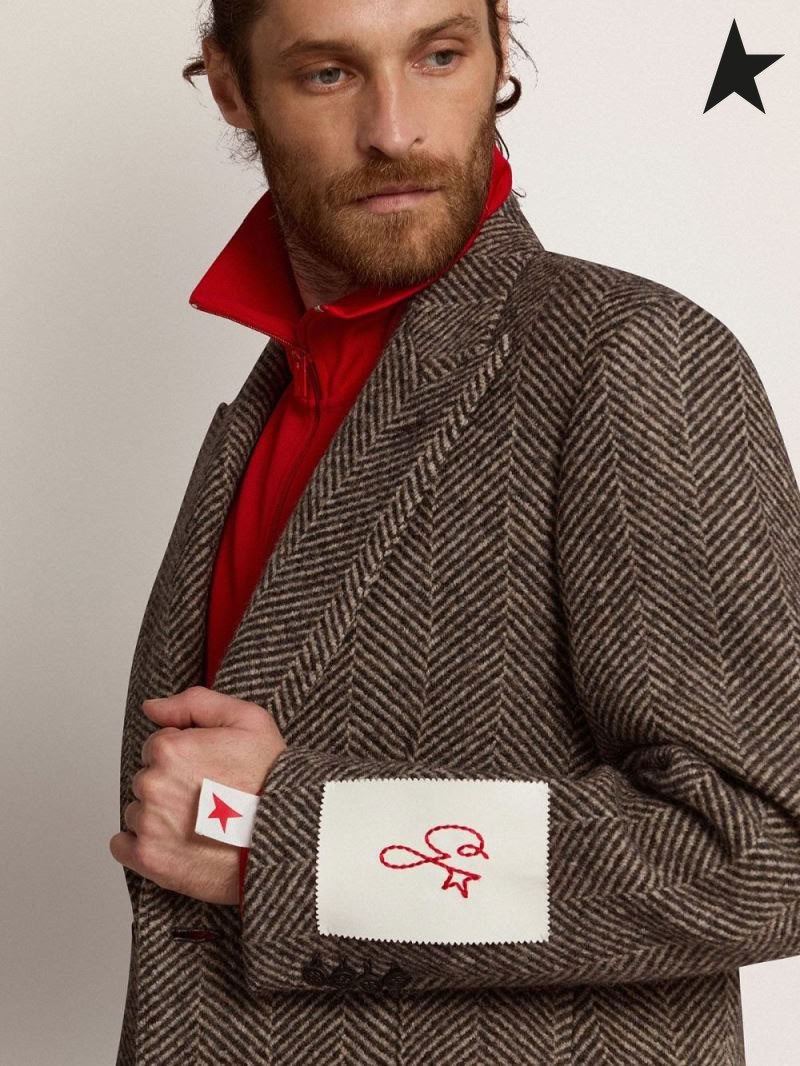 Golden Goose Golden collection single-breasted kappa i ull med fiskbensmönster väva i beige och antracit grå Beige grå
