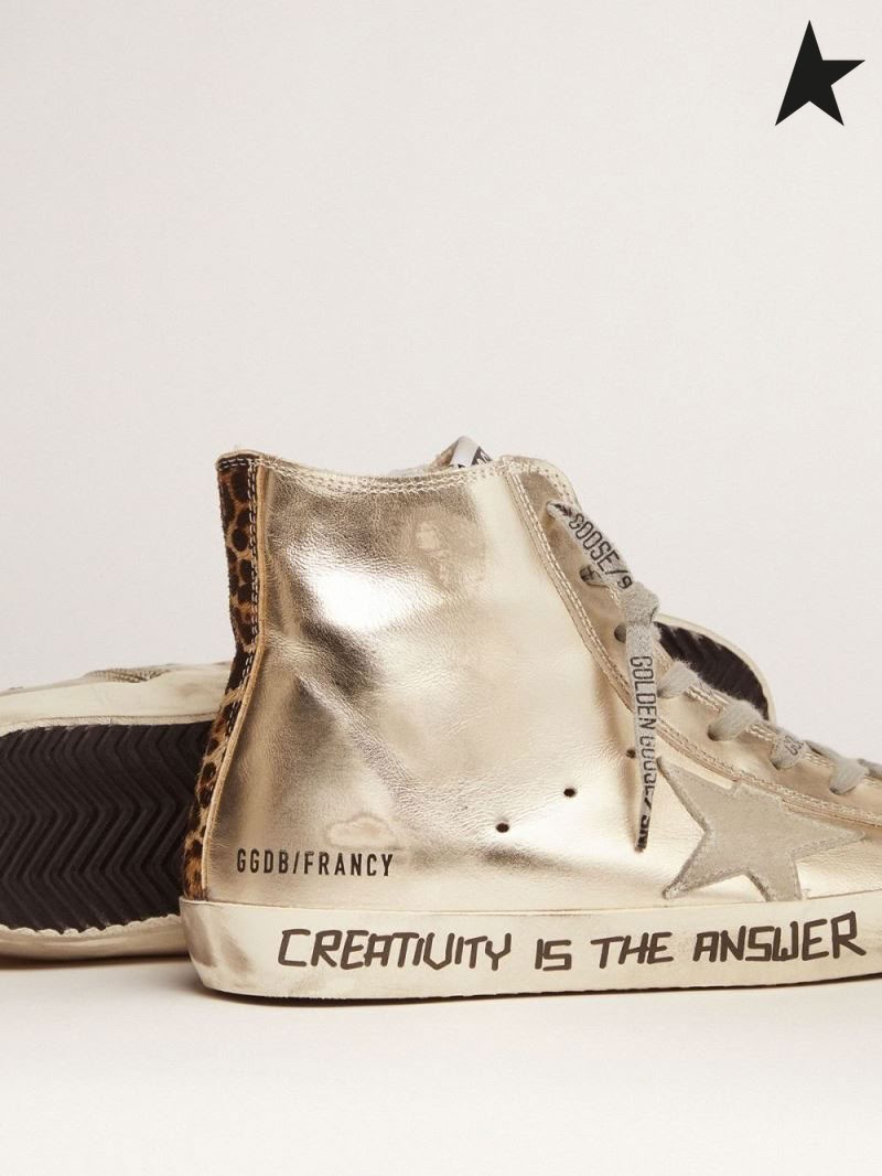 Golden Goose Guld Francy sneakers med handskrivna bokstäver och leopard-print detalj guld färg grå leopard