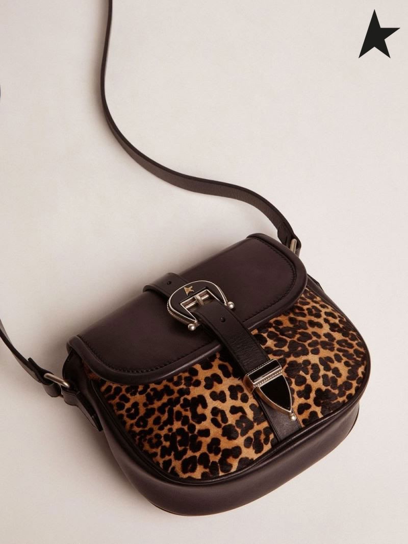 Golden Goose Liten Rodeo Väska i svart läder och leopard-print ponny hud svart