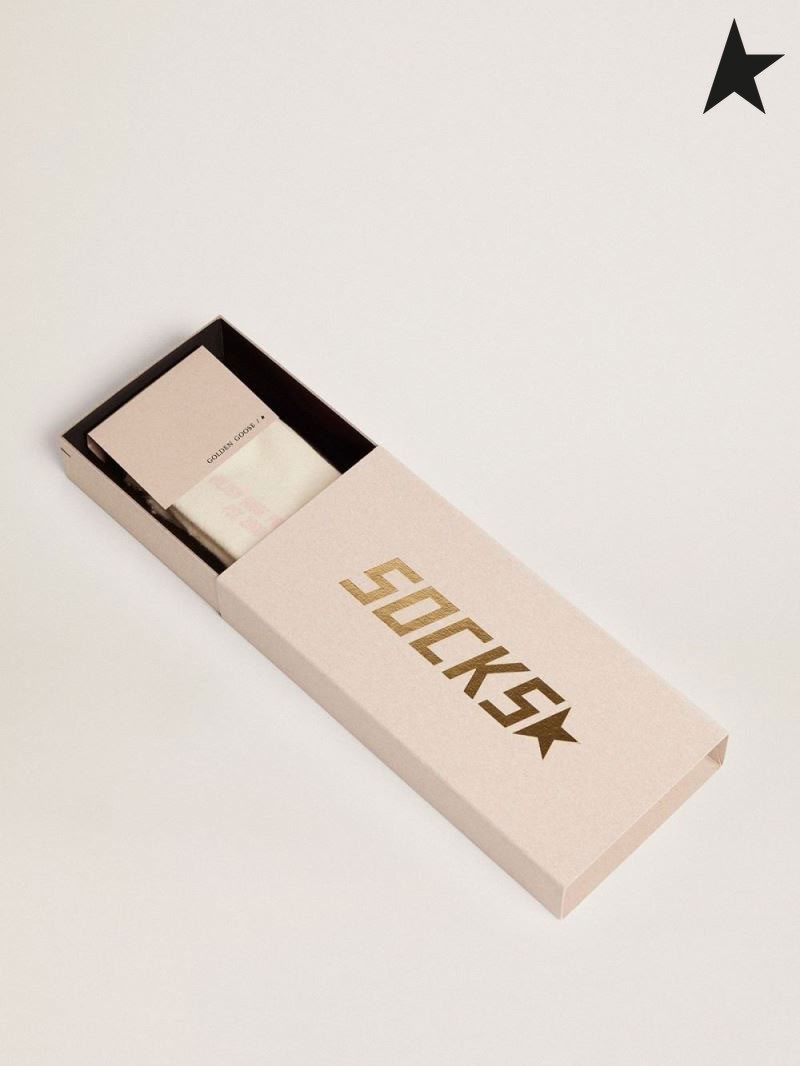 Golden Goose Nödställda-finish vita strumpor med baby-rosa logotyp och ränder i vitt