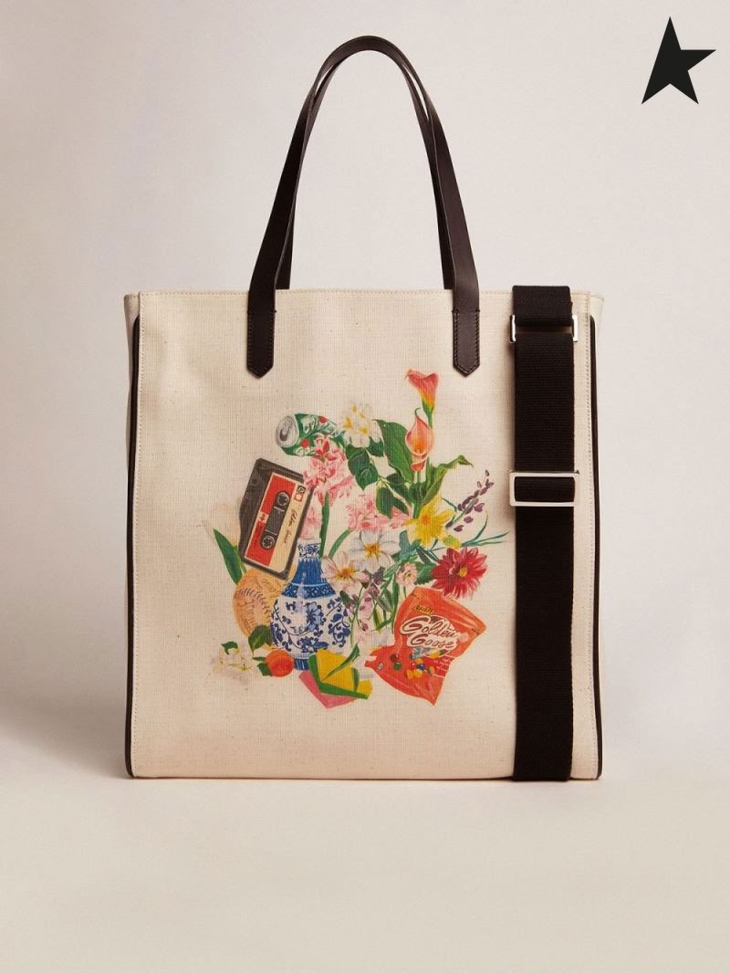 Golden Goose North-South California Väska med kontrasterande collage print white