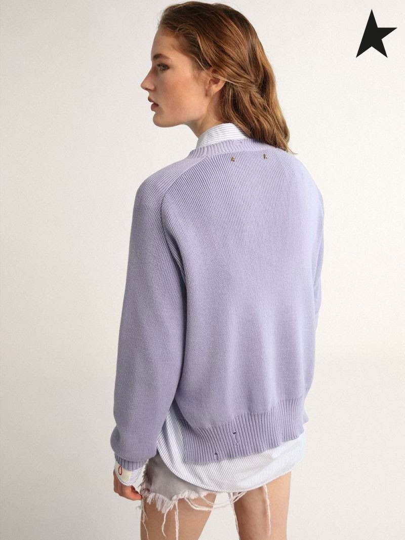 Golden Goose Pastell lila rund-neck Resa samling tröja med nödställda slut och silver-färgade bokstäver Pastell Lila