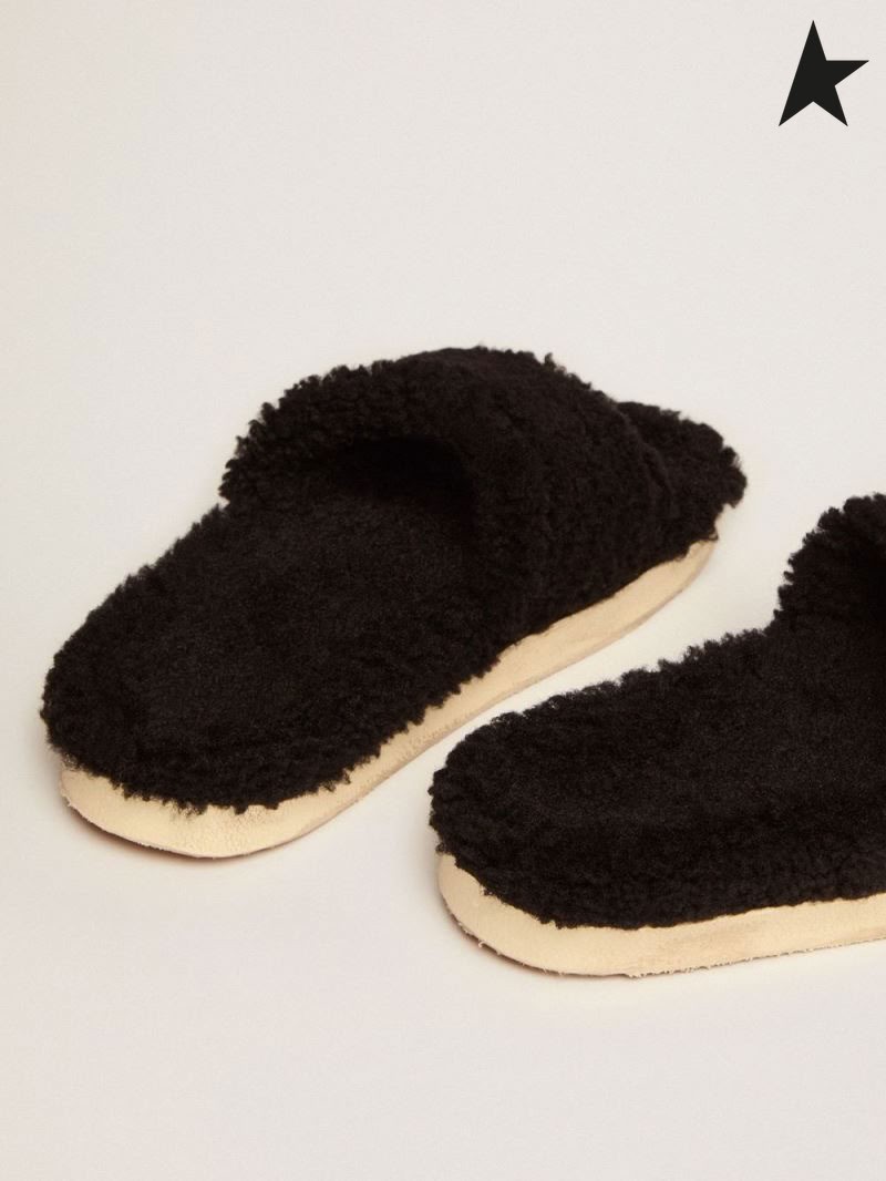 Golden Goose Poolstars Sneakers i svart shearling med stjärna i ton-i-ton läder svart