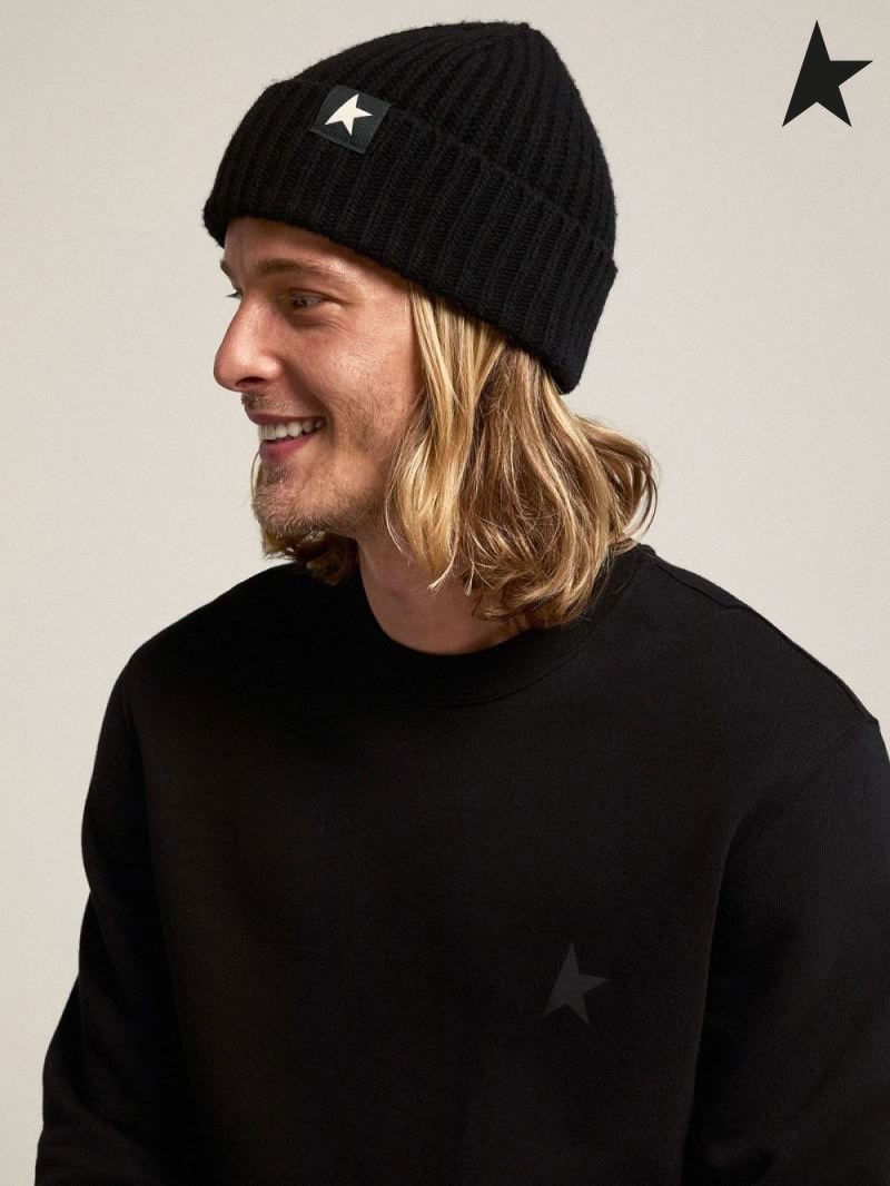 Golden Goose Svart Archibald Star collection tröja med ton-i-ton stjärna på framsidan Svart